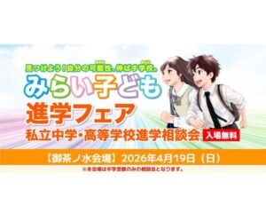 2026年4月19日(日) 10:00~16:00 、TKPガーデンシティ御茶ノ水で行われる「 みらい子ども進学フェア」に参加します。