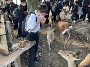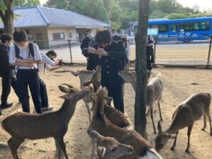 1日目は平等院・奈良公園周辺の見学。奈良公園周辺では「奈良 語り部の会」の方のお話をうかがいながら散策し、仏像や建築物などへの理解を深めました。
