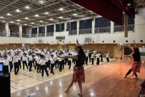 午後はアロハスピリッツを通して文化や多様性を学び、各班でポスターの作成もおこないました。プログラムの最後は修学旅行前から練習してきたフラダンスも披露し、大変好評をいただきました!