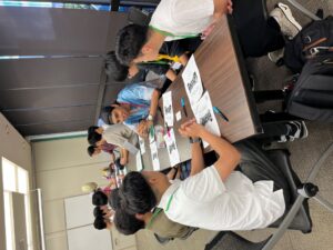 2日目は、文化交流の一環としてハワイ大学マノア校にお邪魔して、1日を通して交流をおこないました。主な内容は、ハワイ大学の学生との英語レッスン、文化プレゼンテーション、日本とハワイに関するディスカッション、大学構内でのICTを利用したミッションハント、アロハスピリッツに関するレクチャー、ポスター作成などです。昼休憩では校内の学食やカフェテリアで、学生と一緒に昼食をとりました。