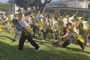 夕食後、眠い目をこすりながら、翌日ハワイ大学で披露するフラダンスの練習をおこない、移動を含めた長い1日を終えました。