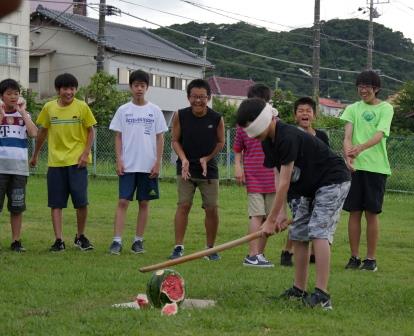 砂浜でスイカ割り、海の家の中庭で行ったクラスも